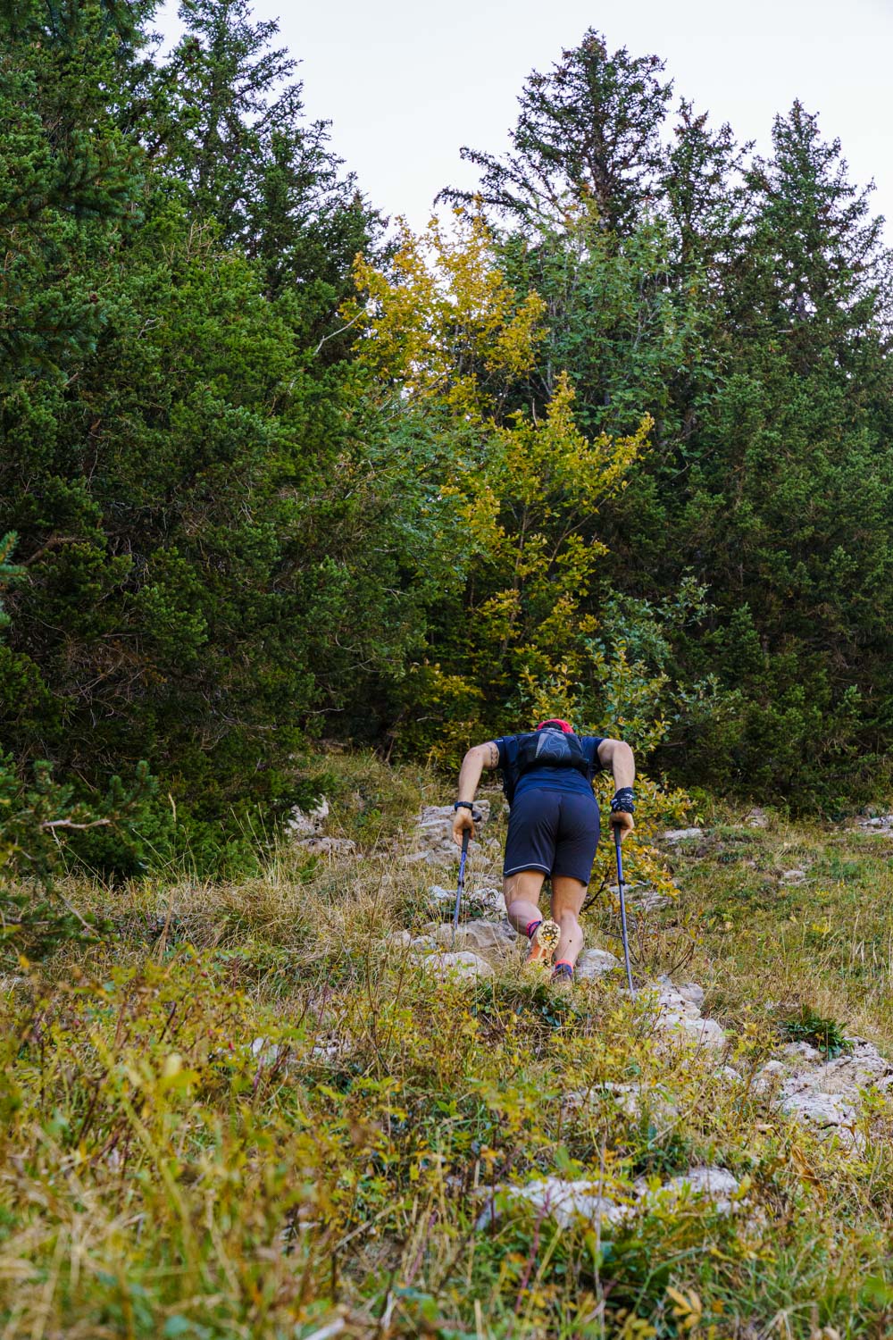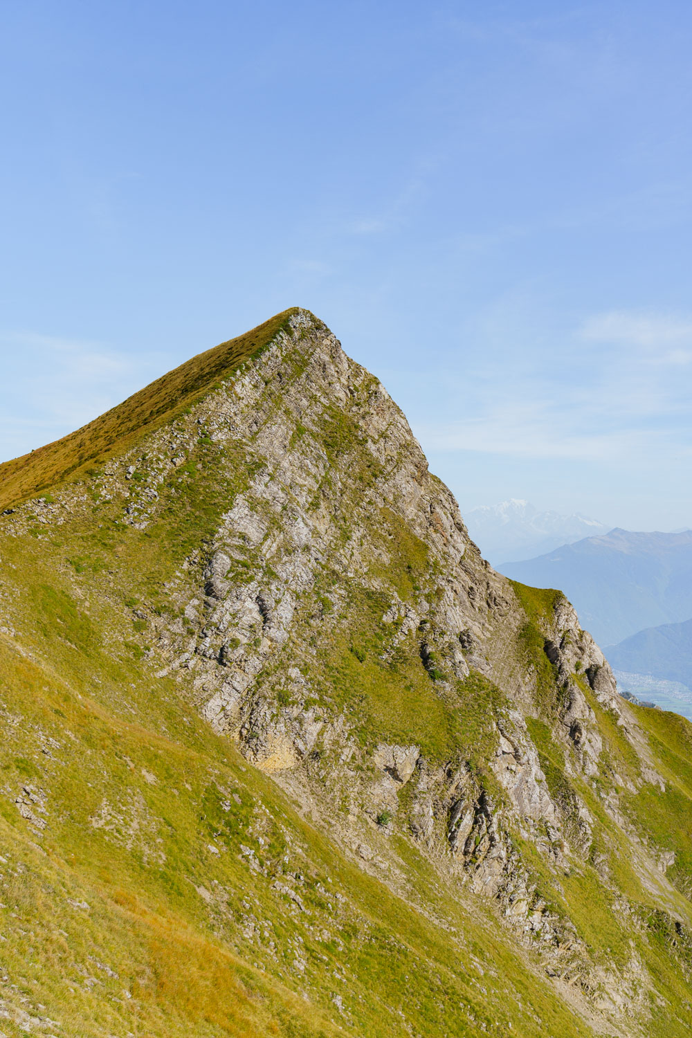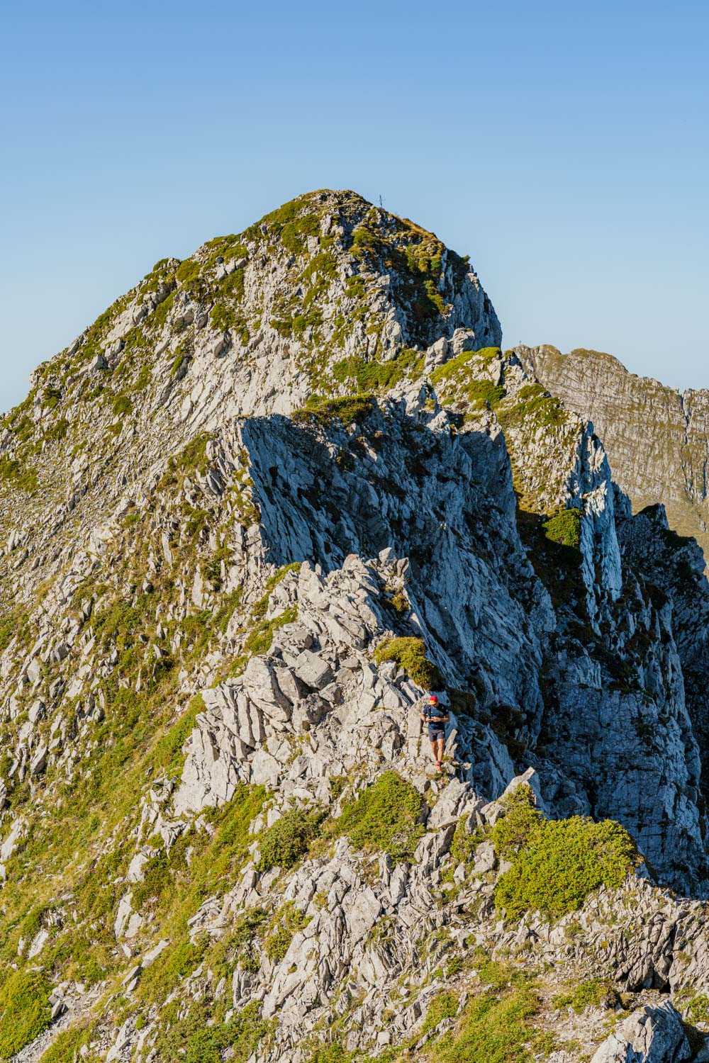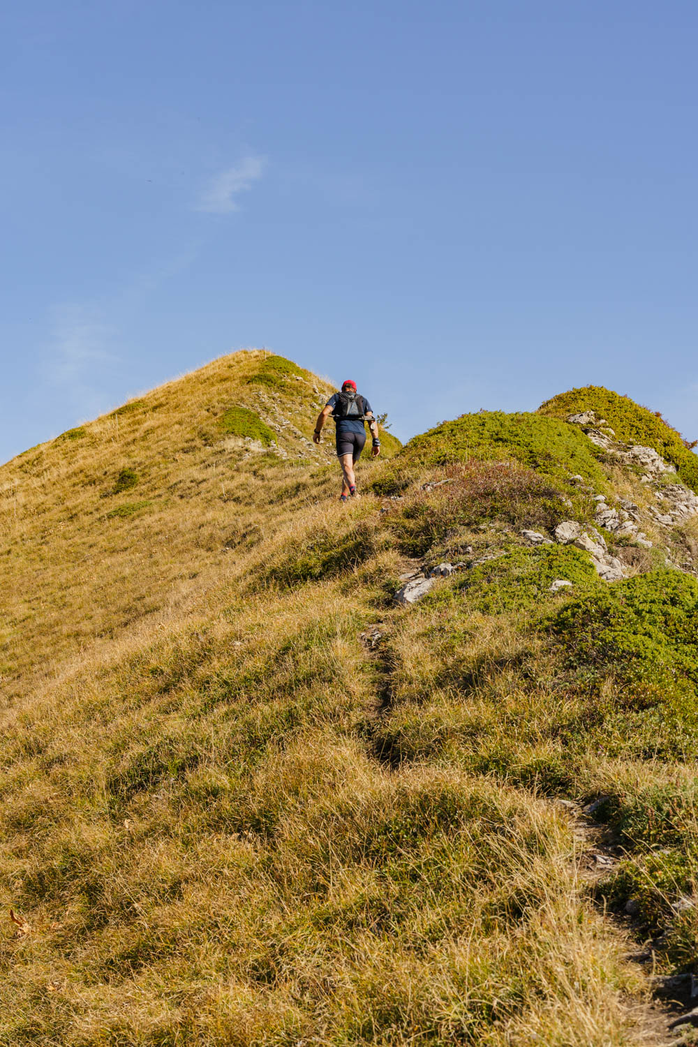 Il faut d’abord descendre sur un terrain caillouteux et instable entre la roche friable et la terre sèche et glissante. Il faut rester attentif et prêt à réagir si un rocher se détache. Après une longue première traversée alternant montées et descentes sur l’arête, on atteint finalement la Pointe des Arlicots.