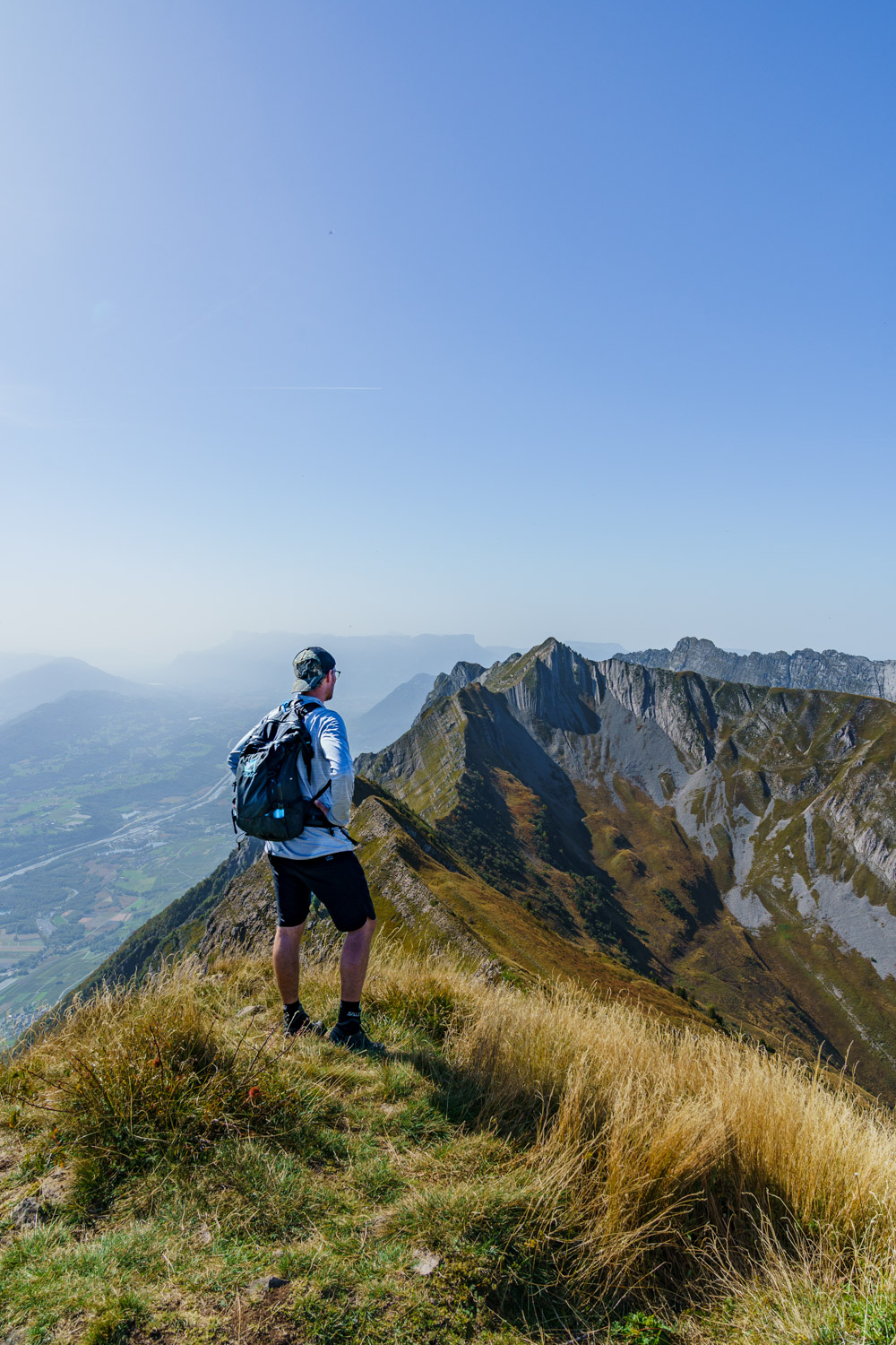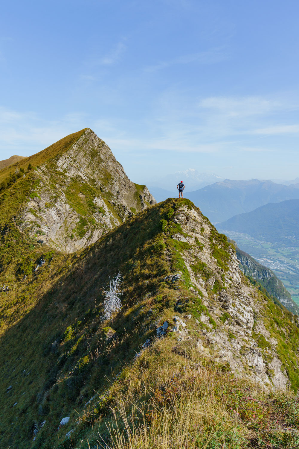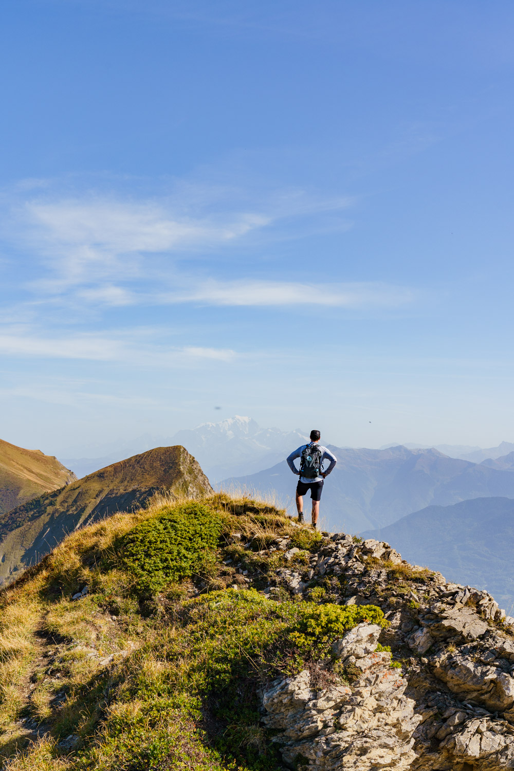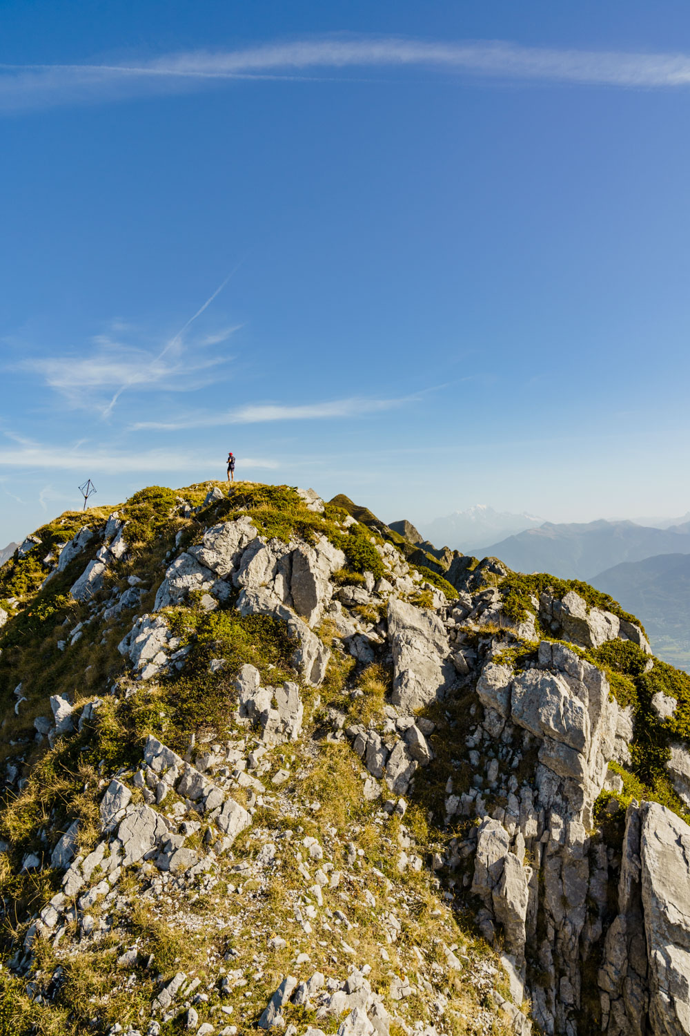 Une fois cette section passée, on progresse plus aisément sur une arête qui se transforme progressivement en crête, avec des sections toujours exposées. Les jambes commencent à peser lourd, et il reste une grosse montée pour atteindre le dernier sommet de la journée, la Pointe des Arces. Finalement atteinte, il est temps de prendre une pose méritée et d’avaler quelque chose pour reprendre des forces ! Il ne faut pas l’oublié, il faut maintenant descendre tout le dénivelé grimpé pour rejoindre la voiture !