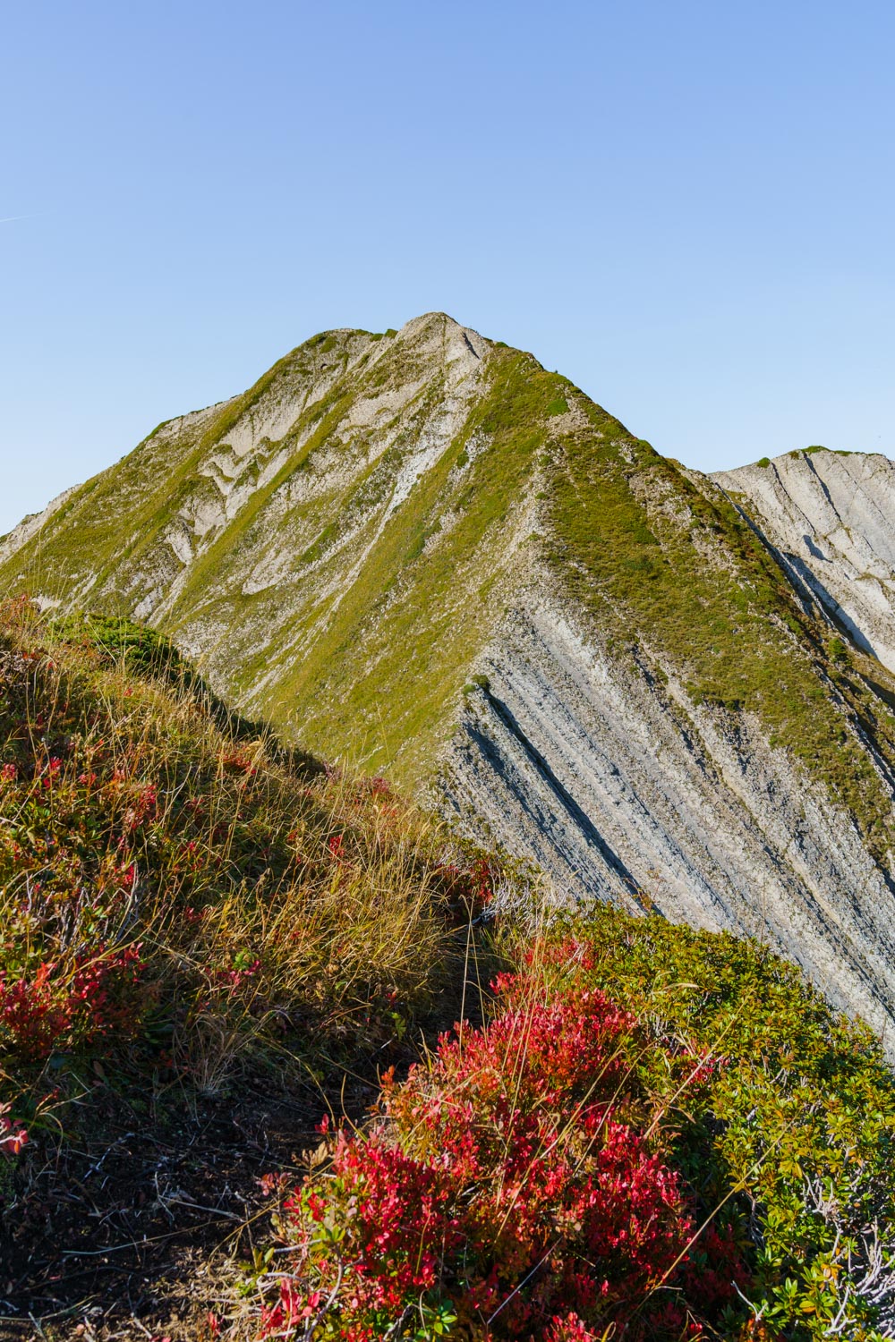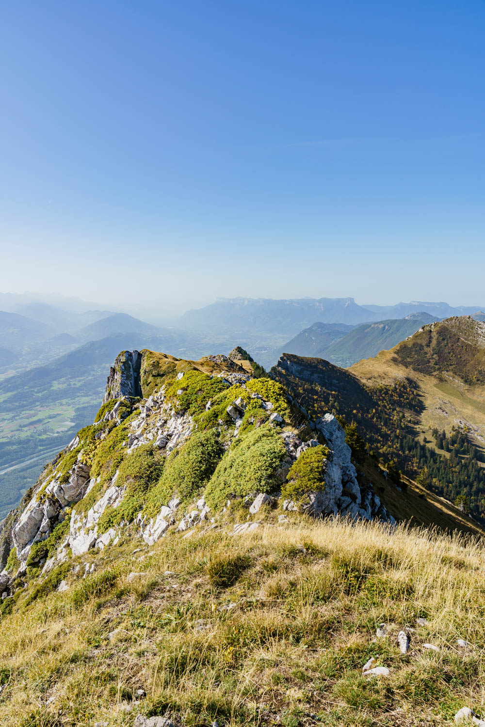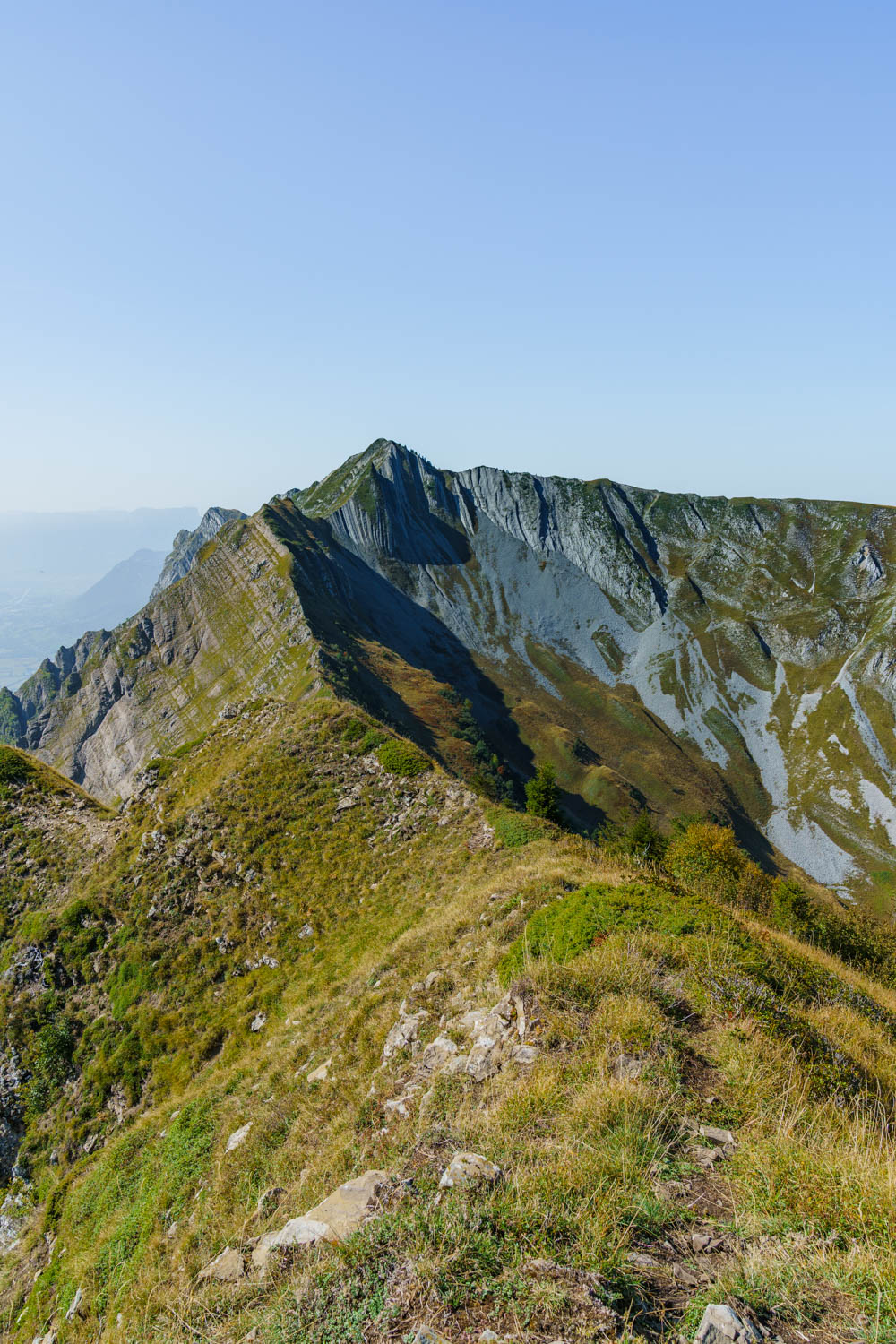 Il n’y a pas de véritable chemin sur une grande partie de la boucle, ce qui la rend semblable à une traversée d’arêtes où le faux pas est interdit. Ces sommets sont sans aucun doute parmi les plus périlleux du Massif des Bauges.