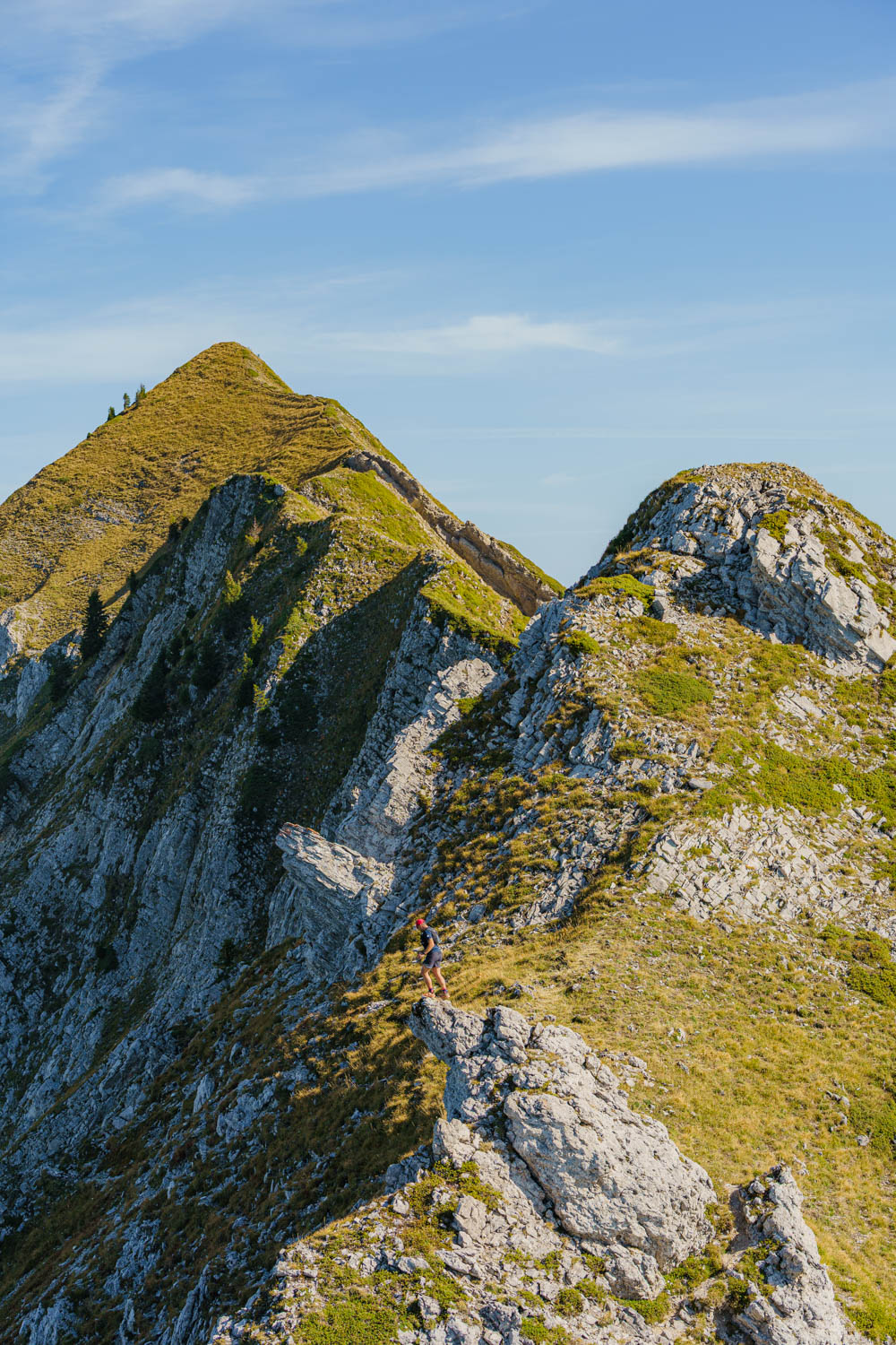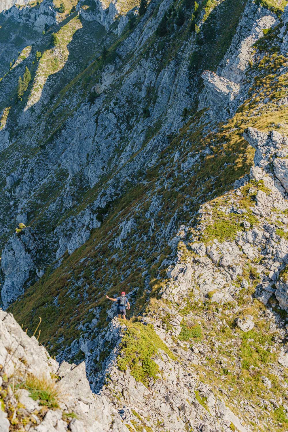 Après une courte pause pour reprendre des forces, il est temps de se diriger vers le second sommet de la journée, la Pointe des Arlicots. C’est le début de la traversée des impressionnantes crêtes de cette partie du Massif des Bauges. Une extrême concentration est nécessaire, car le faux pas n’est plus permis.