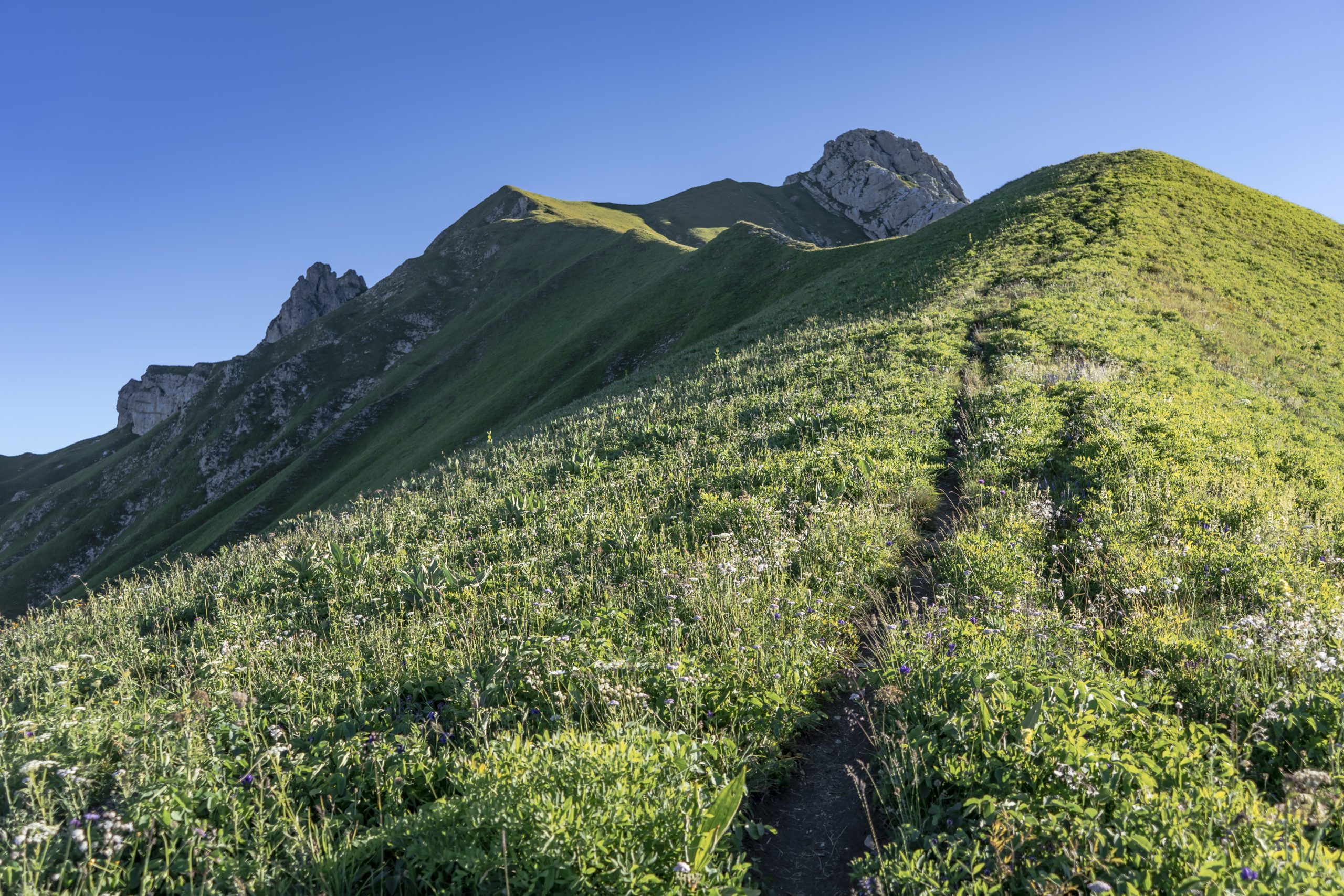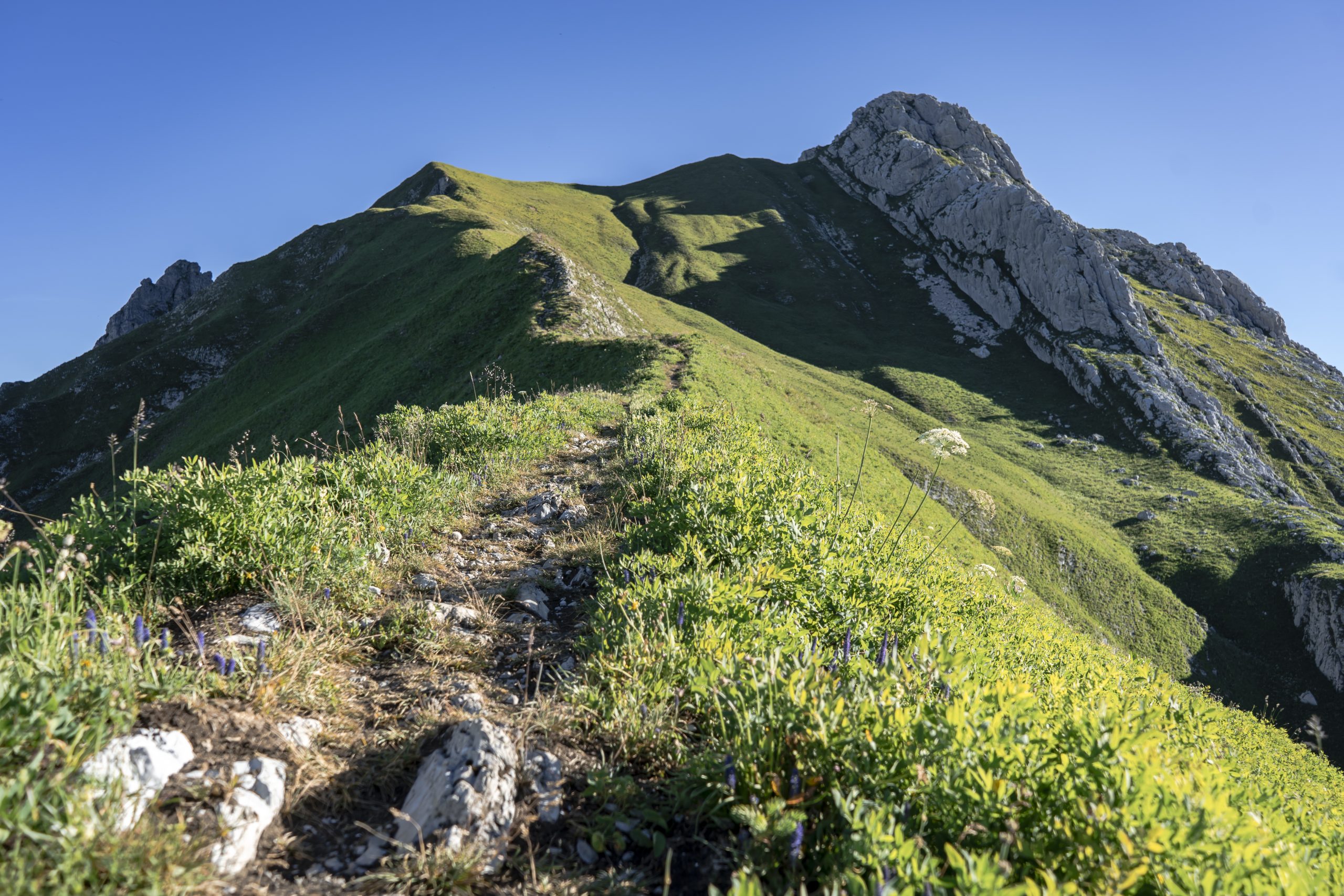 Le majestueux Trélod se révèle ensuite avec sa ligne de crête captivante qu’il faut suivre. Cette montée, plus raide que la précédente, est aussi pittoresque que stimulante, récompensée par une vue sur le Mont Blanc et potentiellement des chamois.